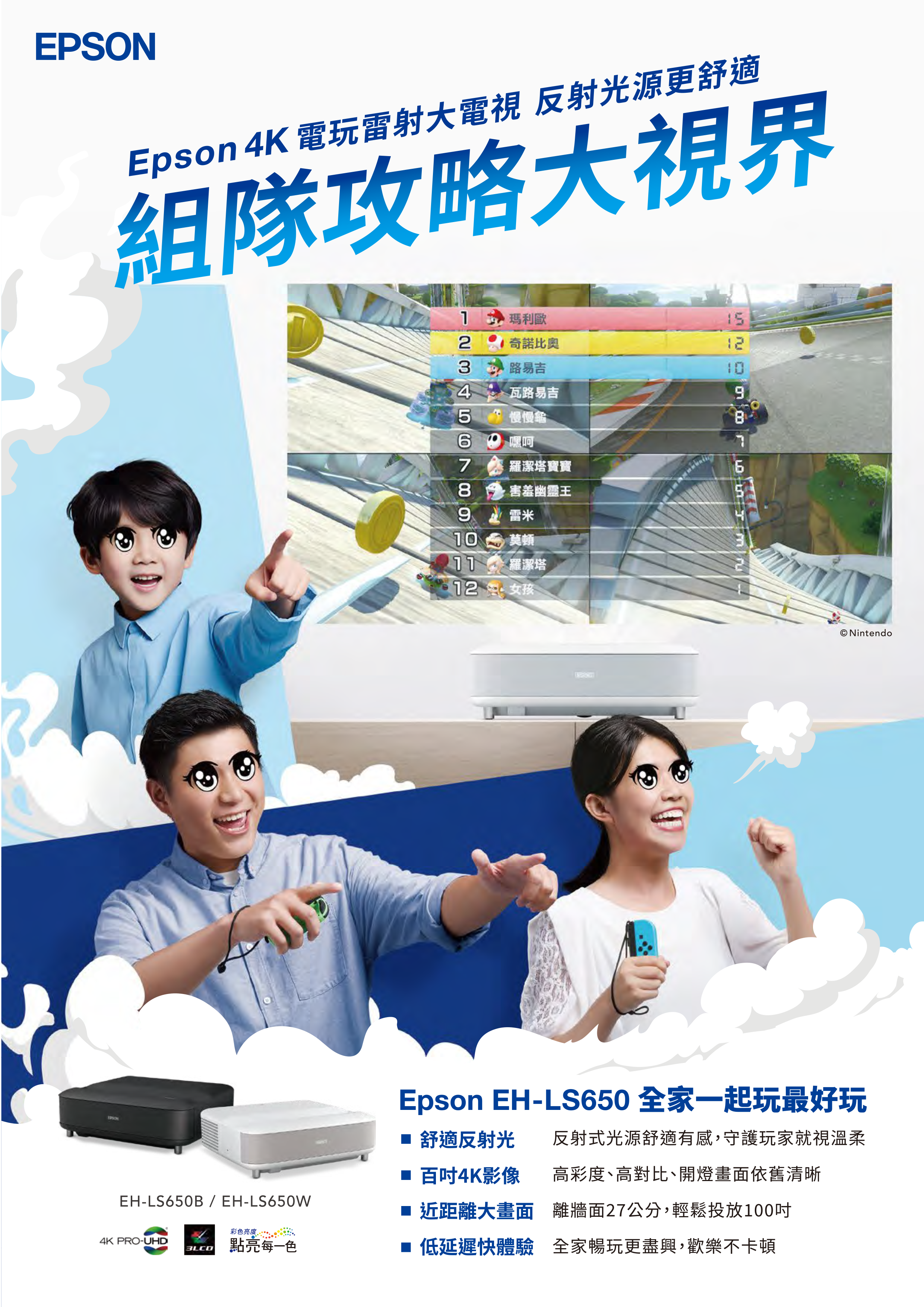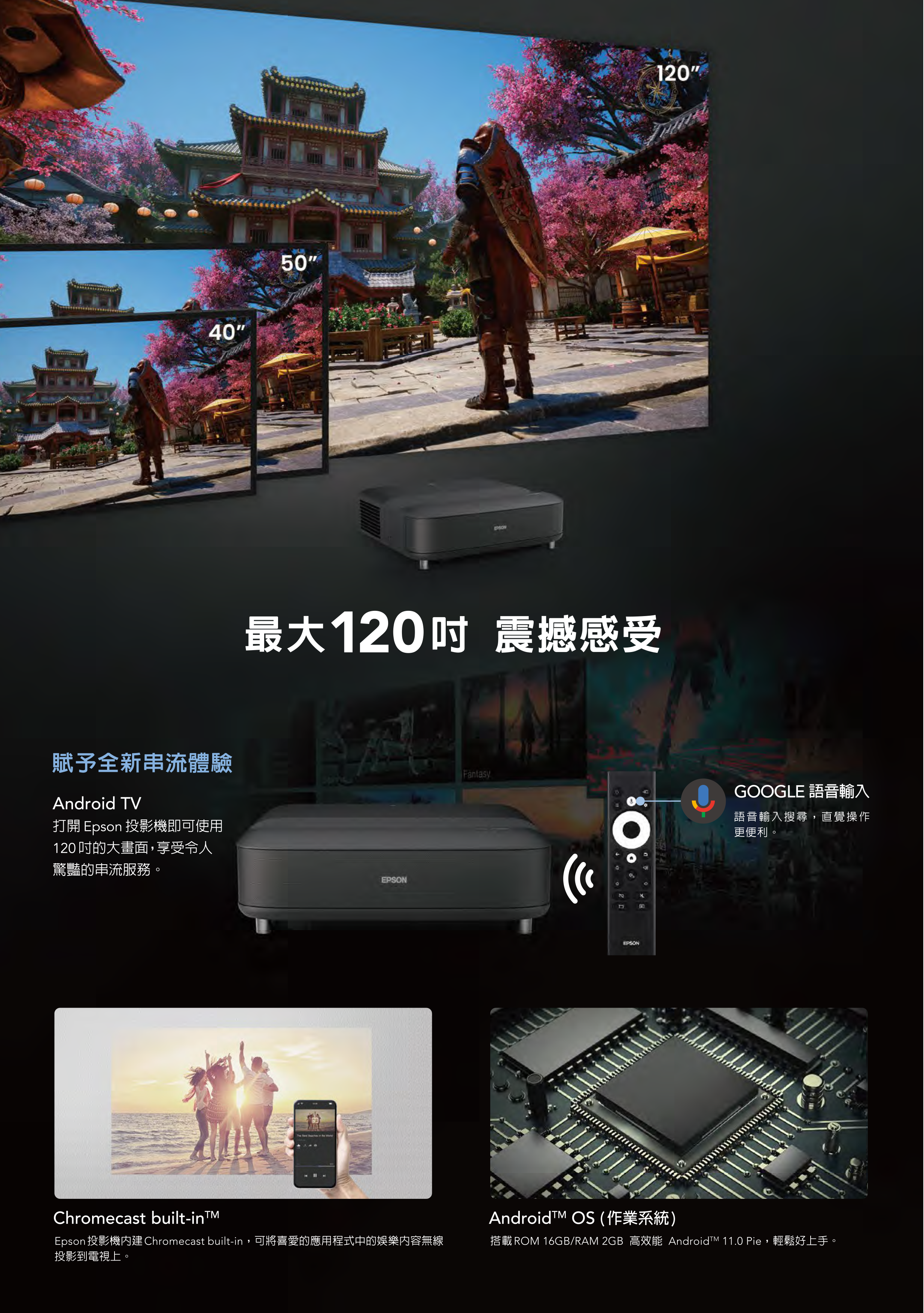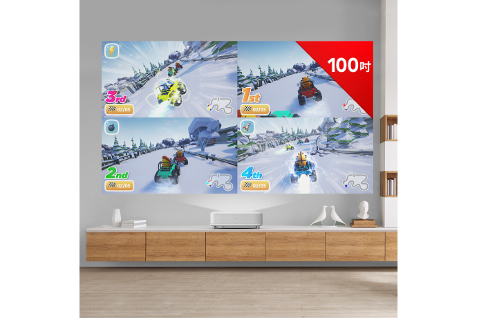 - 支援120吋,多人遊戲、多分割畫面也有大畫面