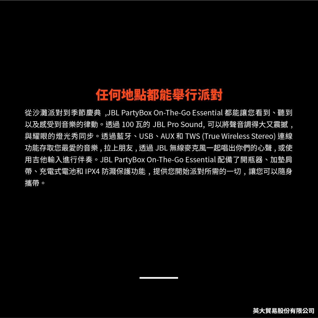 JBL Partybox On-The-Go Essential 便攜式燈光派對藍牙喇叭