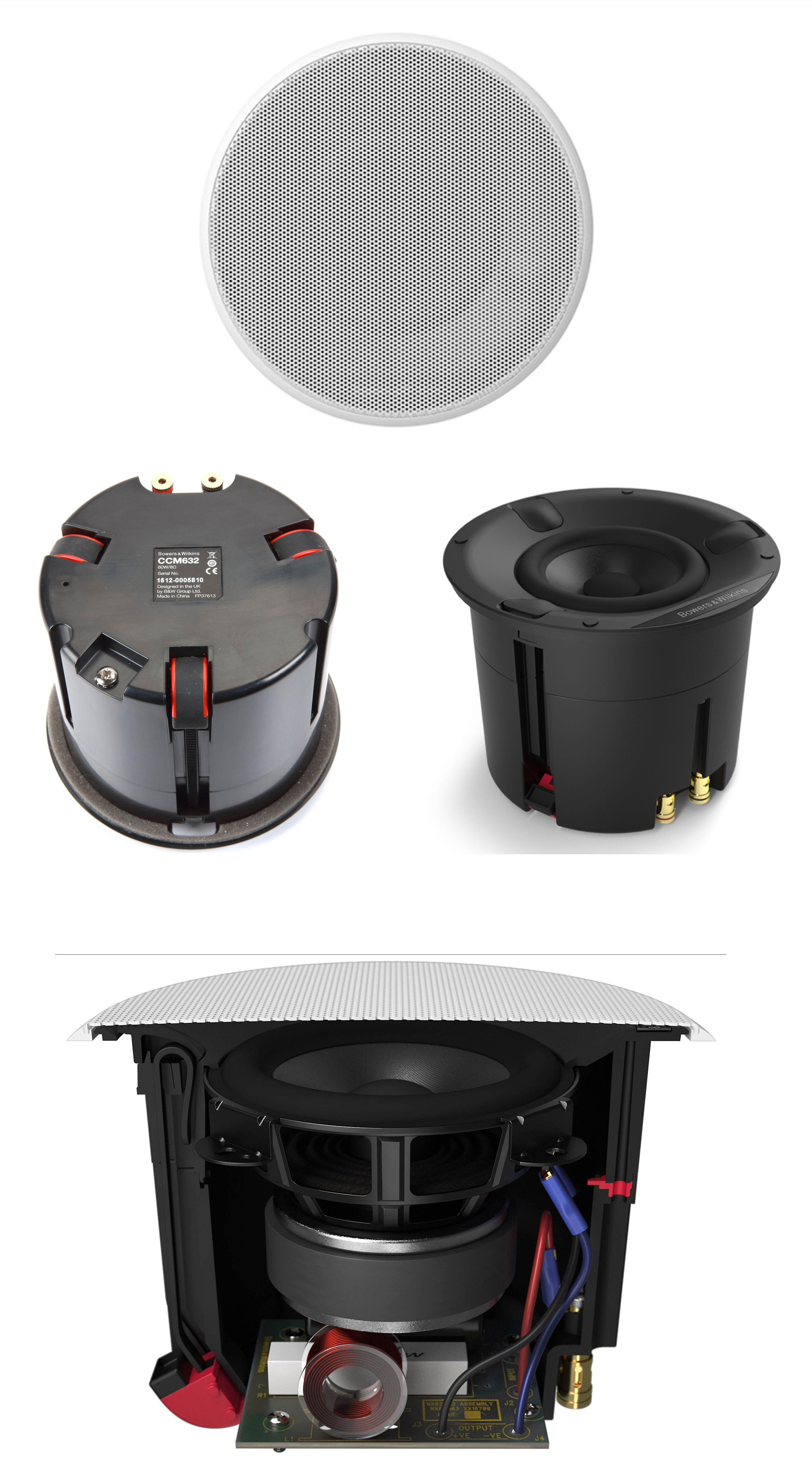 要讓小型吸頂式揚聲器發出完美樂聲是項挑戰,常遇到低音不足、或中音樂聲被前方的高音單體干擾等問題。CCM632以全音域單體打造美麗、和諧音質,而且只需150mm直徑空間。以小空間,打造不容小看的頂級樂聲。配備能防止聲音外漏的特製音箱,極易安裝於各式空間,並且能相容於近乎各種厚度的天花板
