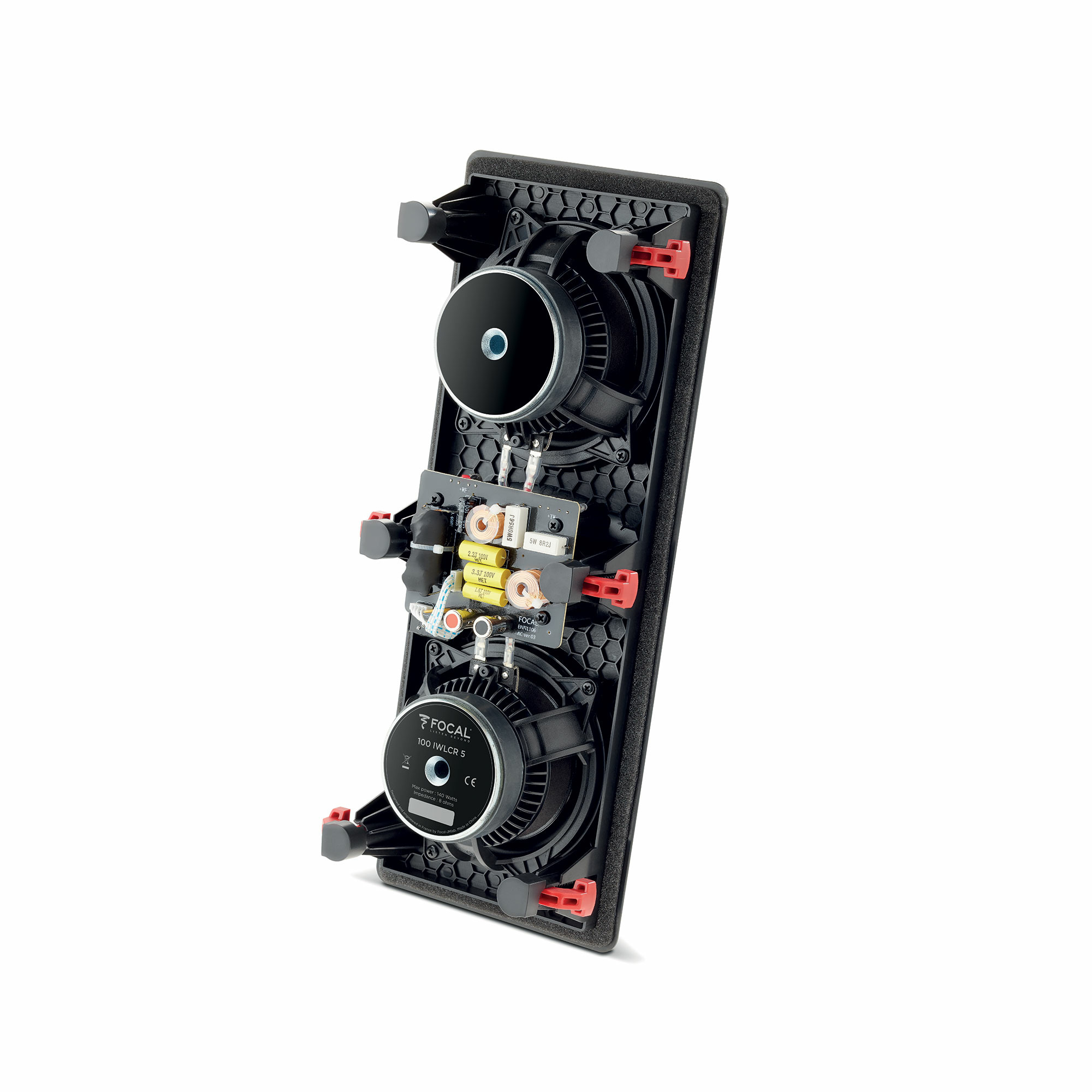 100 IWLCR5 配備可調式倒置圓頂高音單體。其 13 公分喇叭配備聚玻璃振膜,提供優異的阻尼效果與明確的中頻。校正器用於平衡高頻與中頻,以獲得更合適的聲學響應。